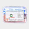 Plastic Box SJF P5 – 1, Compartment 1: Adhesive Plaster 19 X 72mm – 10, Adhesive Plaster 25 X 72mm – 5, Adhesive Plaster Round – 3, Microporous Tape 1.25x5mt – 1, Wound Cleaning Swabs – ALC – 5, Antiseptic Wipes – 5, Electrolyte Powder – 3, Sterile Burn Dressing 5cm – 2, Gauze Bandage 5cmx3mtr – 1, Compartment 2: Sterile Gauze Swab 10 Cm – 1, Sterile Gauze Swab 7.5cm – 1, Burn Dressing Medium 10cm – 1, Sterile Adhesive Plaster 6x10cm – 1, Sterile Eye Pad Oval – 2, Elastic Gauze Bandage 6x1m – 1, Absorbent Cotton 15gms – 1, Scissor 7cm – 1, Compartment 3: Dusting Powder 10g – 1, Antiseptic Cream 10gms – 1, Safety Pin – 10, Antiseptic Solution 50ml – 1, Tweezer Plastic – 1, Tincture Iodine 20ml – 1, First Aid Book – 1, Sugar Sachet – 3, Common Salt Sachet – 3